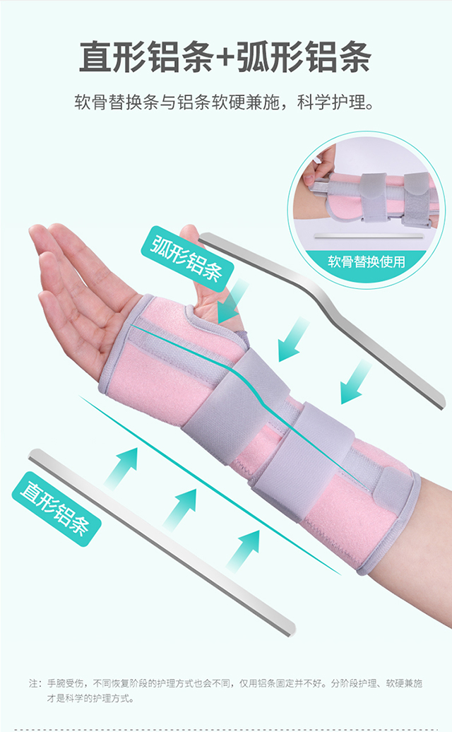 秝客腕關(guān)節(jié)固定帶,直形鋁條+弧形鋁條,軟骨替換條和鋁條軟硬兼施,科學(xué)護(hù)理;吊帶提拉固定,減輕承重,以免手腕長時(shí)間下垂造成充血