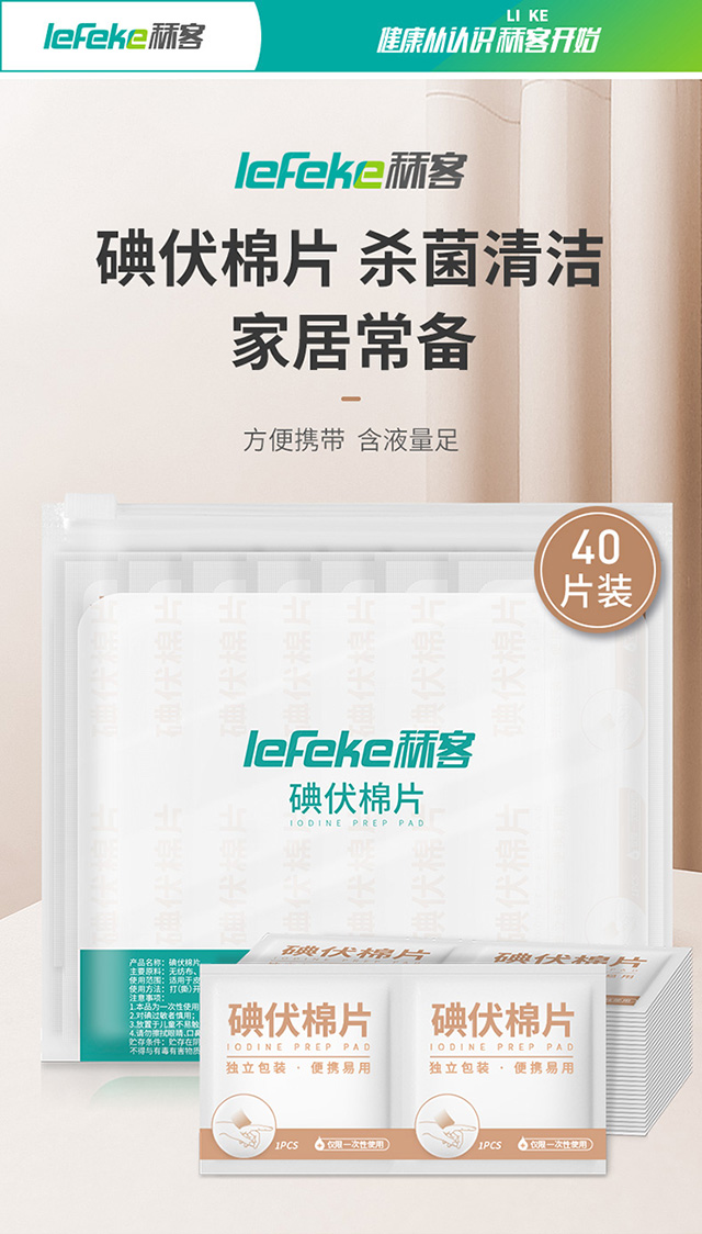 秝客碘伏棉片,含液量充足,小包裝方便攜帶,殺菌率高,可殺滅金黃色葡萄球菌、大腸桿菌等細(xì)菌。 產(chǎn)品細(xì)節(jié)優(yōu)勢(shì): 1、含液量充足 2、小包裝方便攜帶 3、殺菌率高
